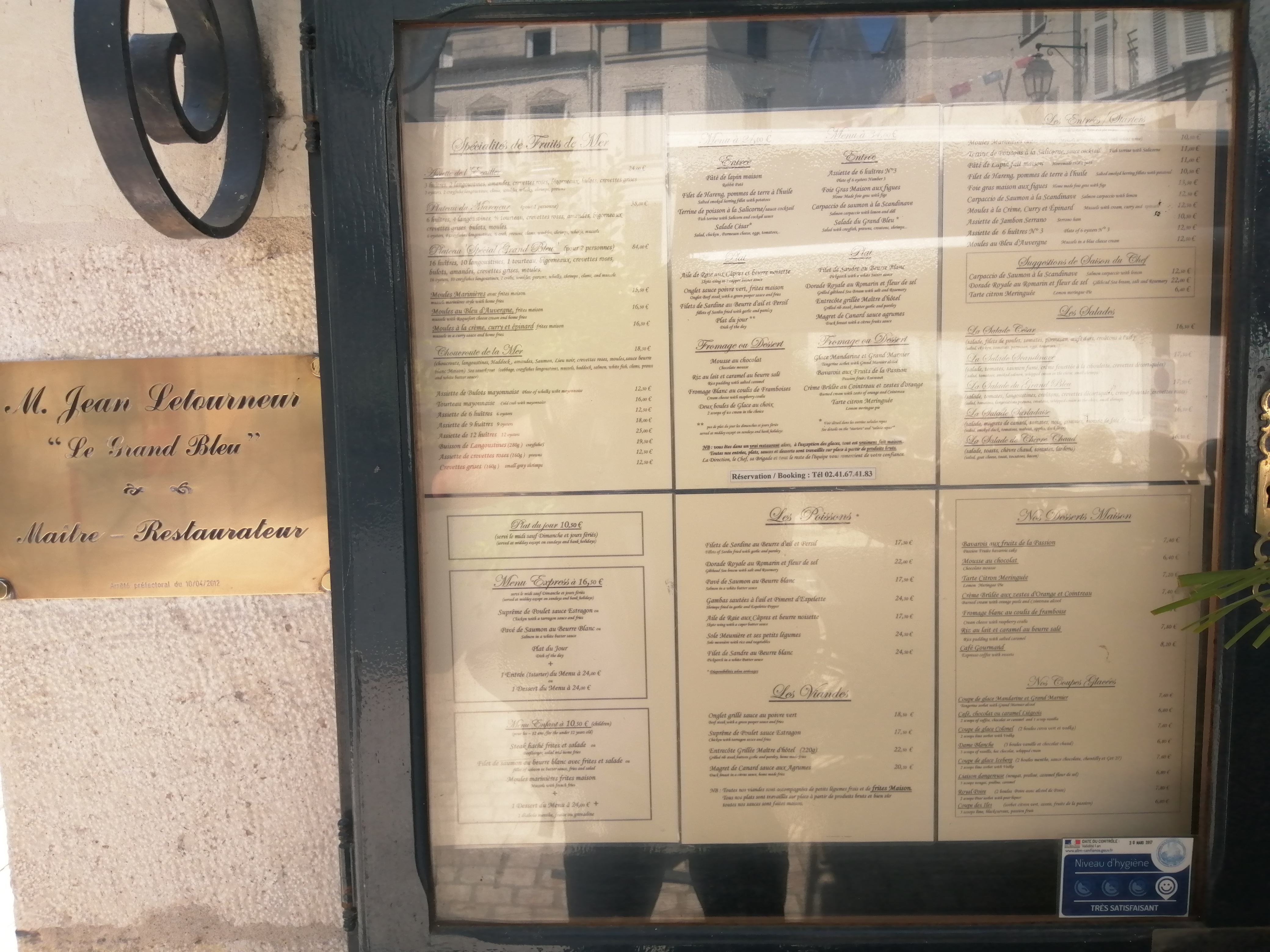 Posté le 13/05/2018 à 15:40"Une belle et bonne adresse (Sandre au beurre blanc) à fréquenter. Beau, bon et agréable restaurant bistronomique (Maître Restaurateur) à la qualité sûre et constante. Pour la 5° fois nous y sommes retournés et ce fut, comme d'habitude, un bel instant, servis dans une élégante salle avec nappes blanches et poutres apparentes. Le poisson (de mer et de rivière) et les fruits de mer restent les thèmes de référence de cet agréable restaurant niché au coeur de Saumur (plateaux et/ou assiette de l'écailler fraîchement garnis, mouclade, beaux filets de bar grillés au romarin, très bonne dorade royale grillée au citron vert, poêlée de noix de Saint Jacques à la Saumuroise, poêlée d'anguilles à la persillade, …). Le Val de Loire n'est pas oublié, il est même très bien représenté : brochet ou sandre au beurre blanc par exemple. Pour les carnivores : très bon tournedos sauce au foie gras (NB : le foie gras en entrée est pas mal du tout), rognons et sympathique bavette d'aloyau sauce au poivre vert. Desserts classiques et bonne cave. Service, pro., attentif, cordial et rapide. Une valeur sûre, à fréquenter, en salle ou en terrasse (très agréable) (perso, chaque fois que je passe par Saumur ou sa Région, je déguste un sandre au beurre au blanc au Grand Bleu). Réservation recommandée."