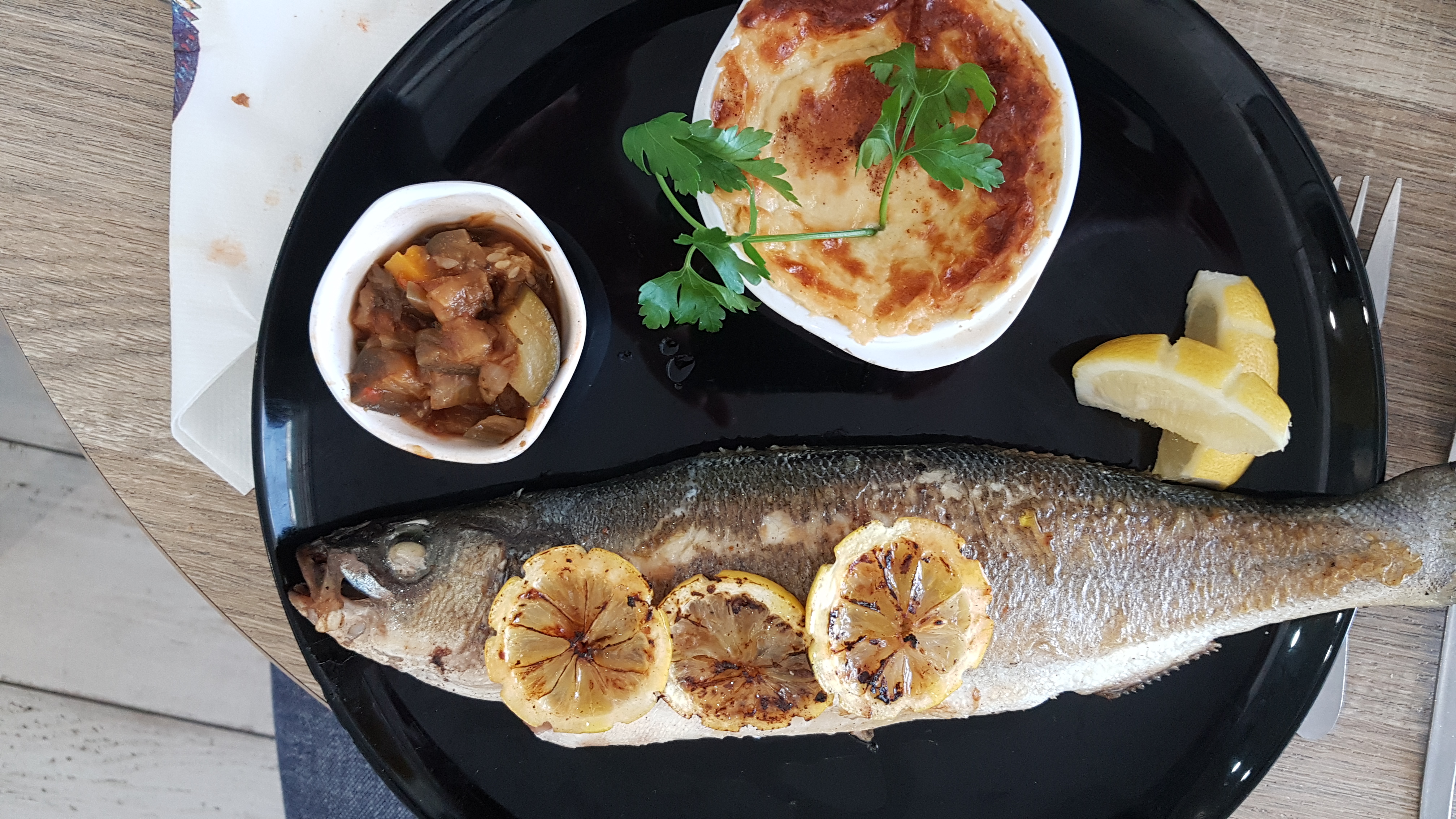 Super restaurant nous avons pris du poisson loup entier avec une purée de pomme de terre très bonne. Service irréprochable et serveuse très aimable. A refaire