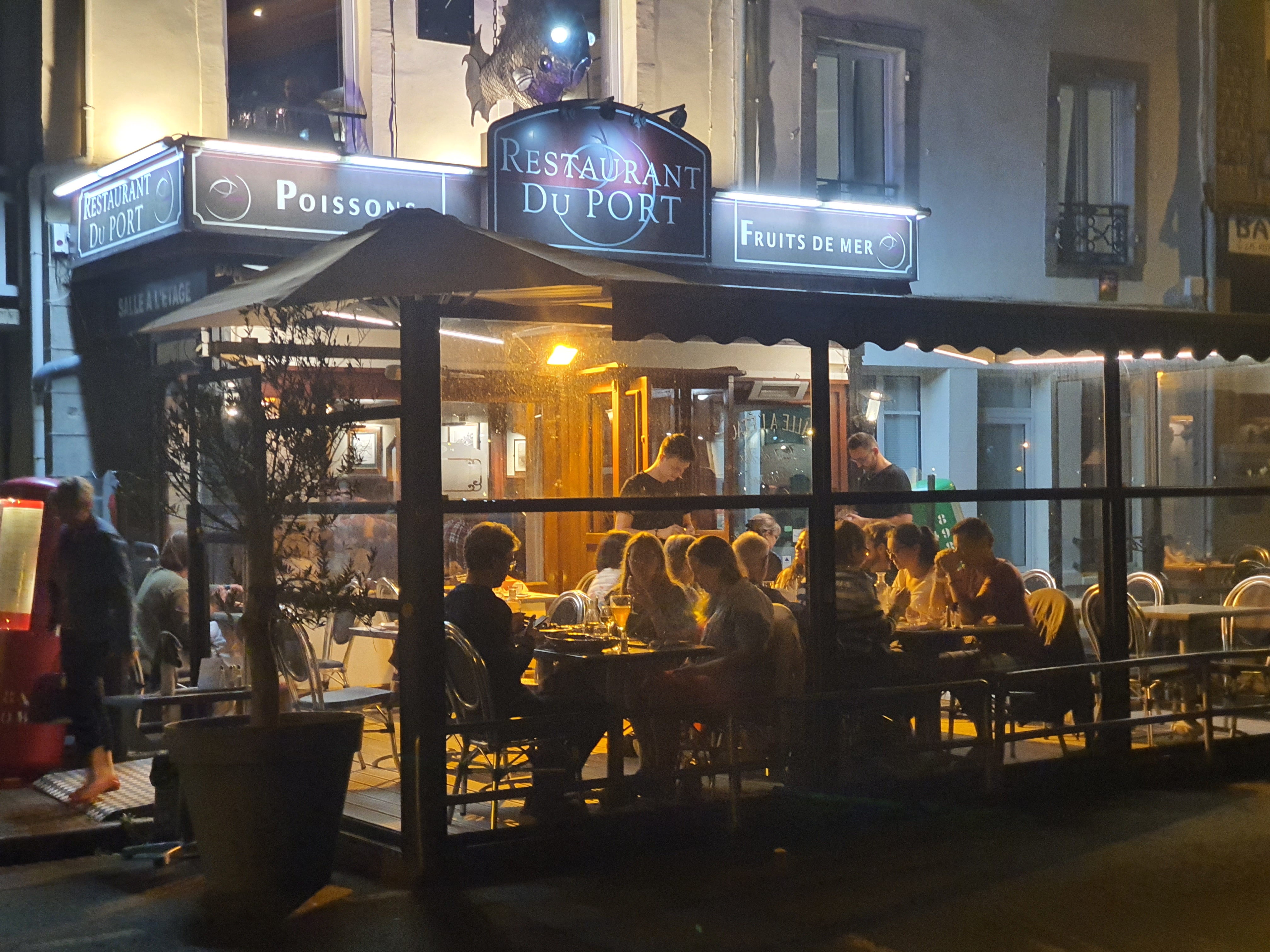 Bonne adresse pour déguster de bons fruits de mer avec une petite terrasse avec vue sur le port, ou bien vous pourrez vous installer à l'étage supérieur ; bonne carte avec des poissons et fruits de mer, goûter aussi aux spécialités du chef comme la paella où les gambas sauce safranée et riz, un délice ! Bonne carte de vins où si vous préférez, essayer le cidre brut qui accompagnera vos plats, et n'oubliez pas les desserts (mousse au chocolat, crème caramel où glaces) comptez entre 30 et 50 euros pour un bon repas !