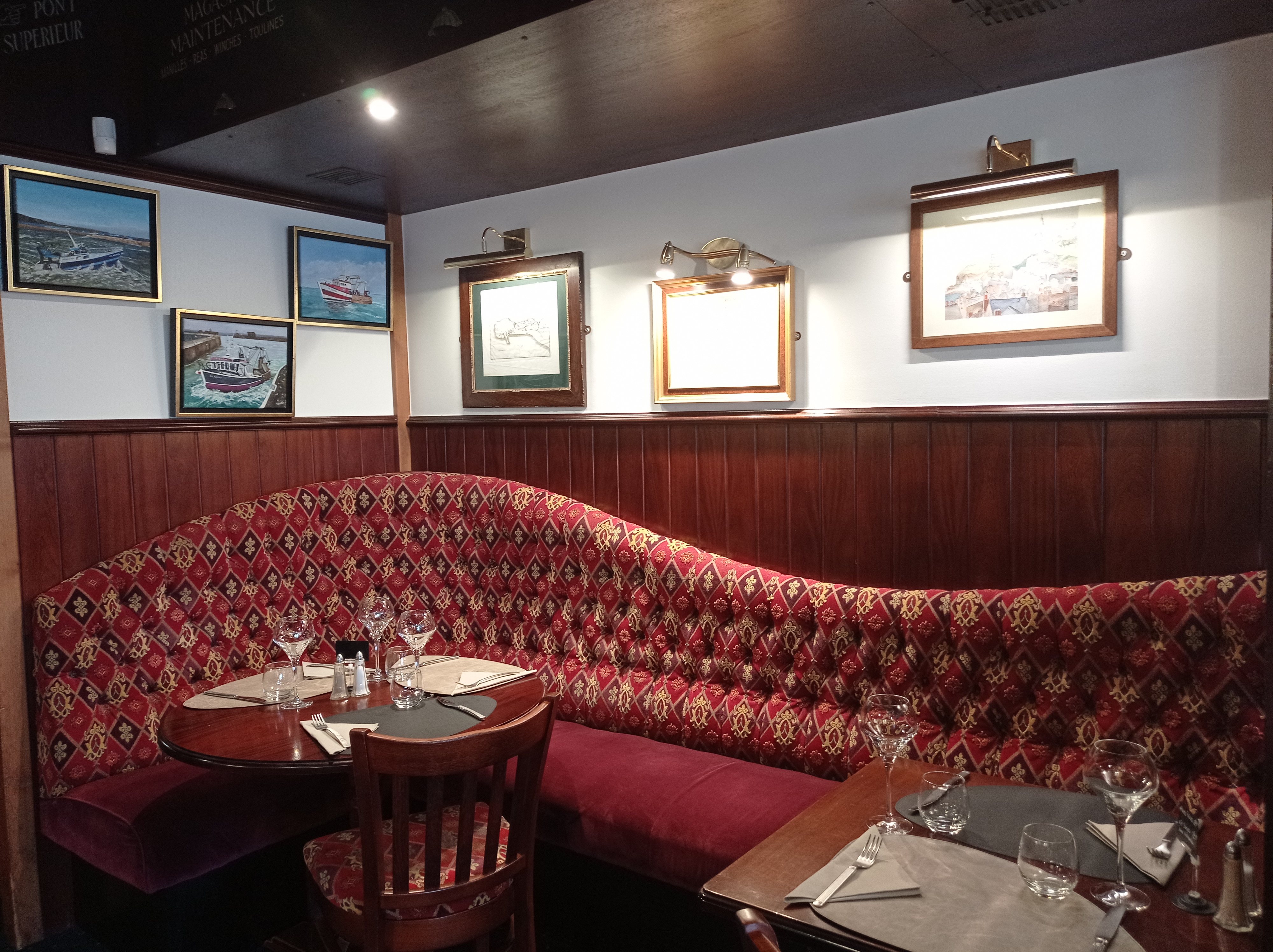 Super endroit avec une belle déco d’ambiance loup de mer. Une belle salle à l’étage avec vu sur le port. L’accueil est chaleureux et efficace. Nous sommes venu en groupe avec 9 adulte et 9 enfant dont trois en bas âges, et tous s’est bien passé. Pour les jeunes le service a été rapide. Ce qui a permis à tout le monde de bien profiter du moment. Côté cuisine c’est très bon. J’ai mis un petit bémol sur les prairies au beure d’escargot, car je n’ai pas trop aimé le mariage. Néanmoins je recommande cette adresse.