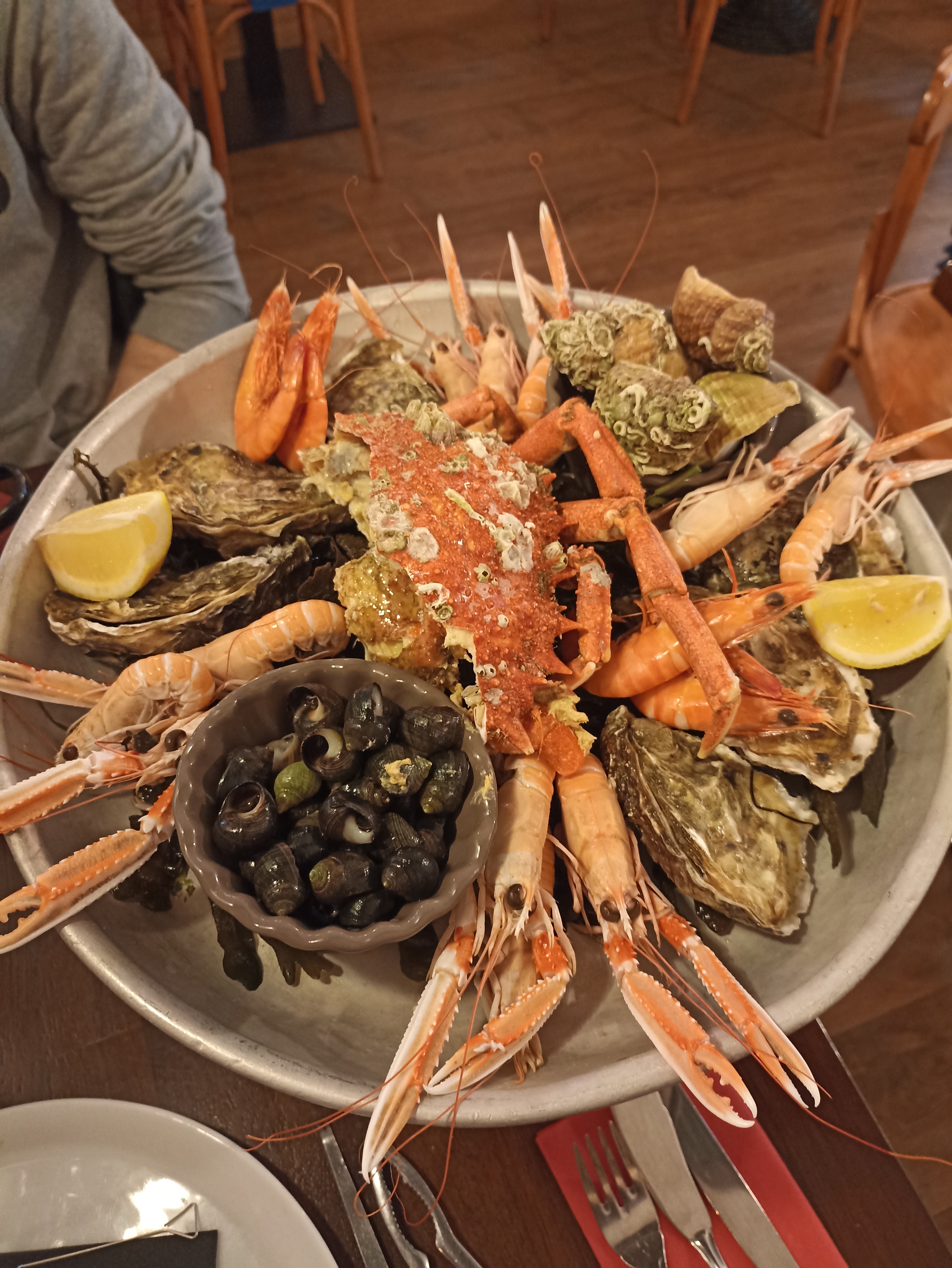 Posté le 30/10/2024 à 12:52"Si vous voulez déguster un très bon plateau de fruits de mer, vous êtes à la bonne adresse ! La cuisson des crustacés est parfaite et la qualité/prix est là. Le personnel est agréable et accueillant."