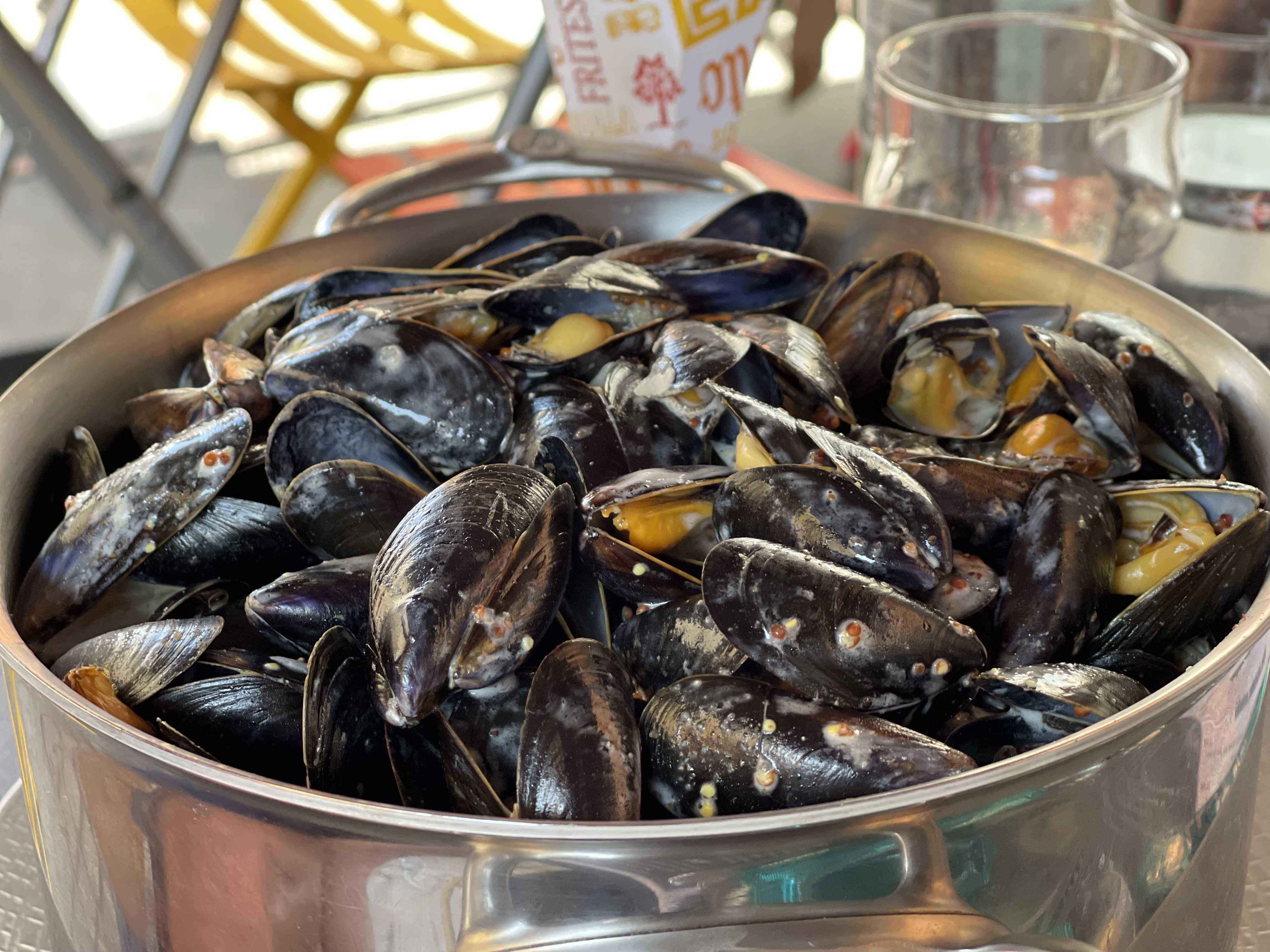 Bonjour, On vous propose, écrit sur une énorme ardoise que vous ne pouvez pas manquer, moules frites à volonté…. Ce soir j’ai eu droit à deux tiers d’un marmiton dont la plus part des coquilles étaient vides et rien à récupérer dans la marinière…. On vous demande si tout se passe bien, vous le faites remarquer…..aucune réaction…..On vous débarrasse, vous le faites remarquer pensant qu’on va vous proposer le à volonté…..rien donc j’en déduis qu’il n’y a plus de moule et encore moins de frites. Je prend un dessert café, comme indiqué au serveur pour ne pas rester sur ma faim…..Je règle l’addition en faisant part du service et je m’entends……il fallait le dire….. Dans quelle langue……