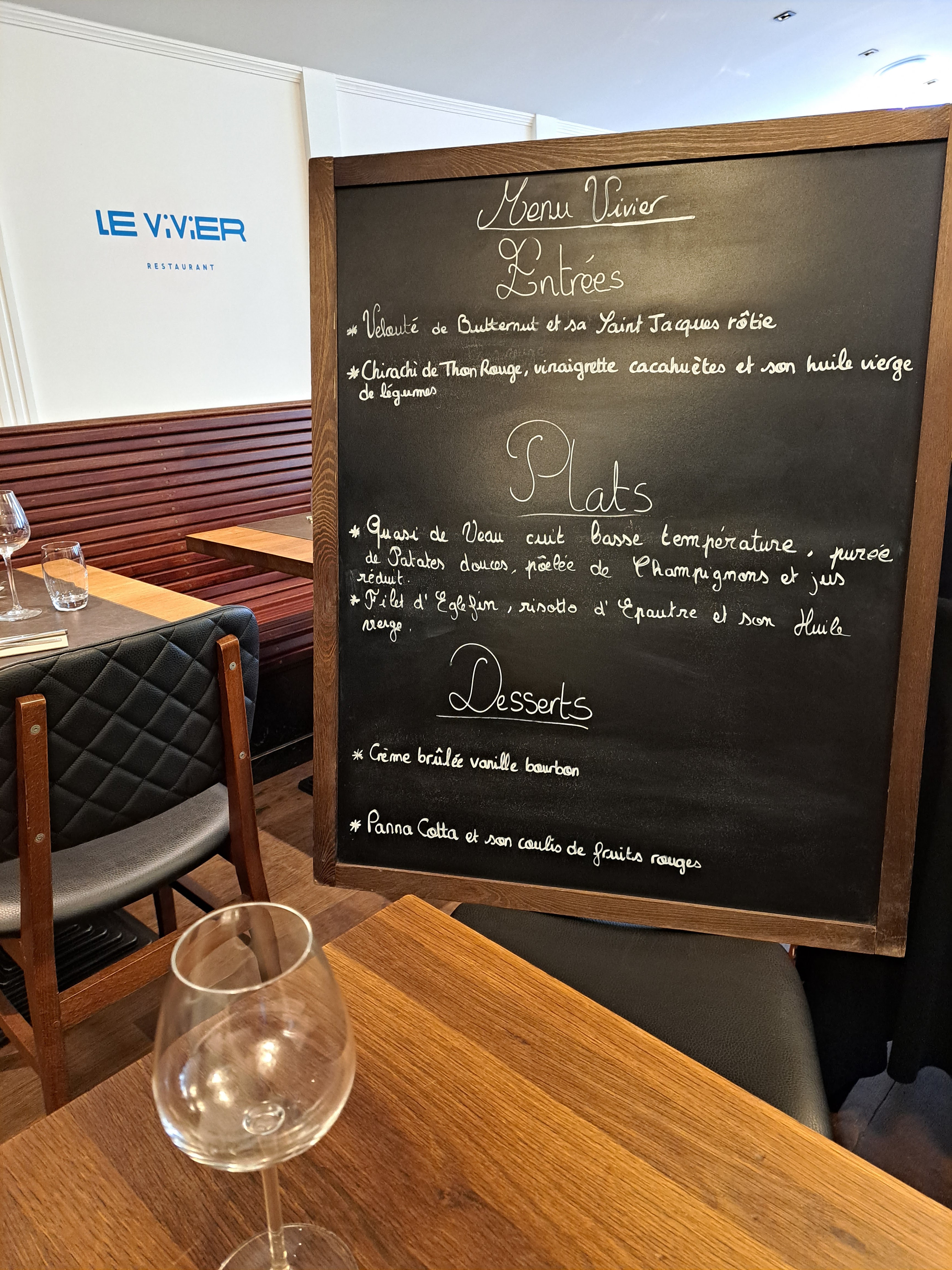 Posté le 05/02/2025 à 06:43"Nous sommes particulièrement ravis de notre passage au Vivier. Tout était parfait : véritable accueil, carte très diversifiée permettant de satisfaire les goûts de chacun, disponibilité du personnel tant pour expliquer la composition des plats que pour conseiller des accords plats-vins ( avec de belles découvertes). Sans oublier bien sûr la qualité des plats. Nous reviendrons sans problème et nous conseillons ce restaurant très vivement."