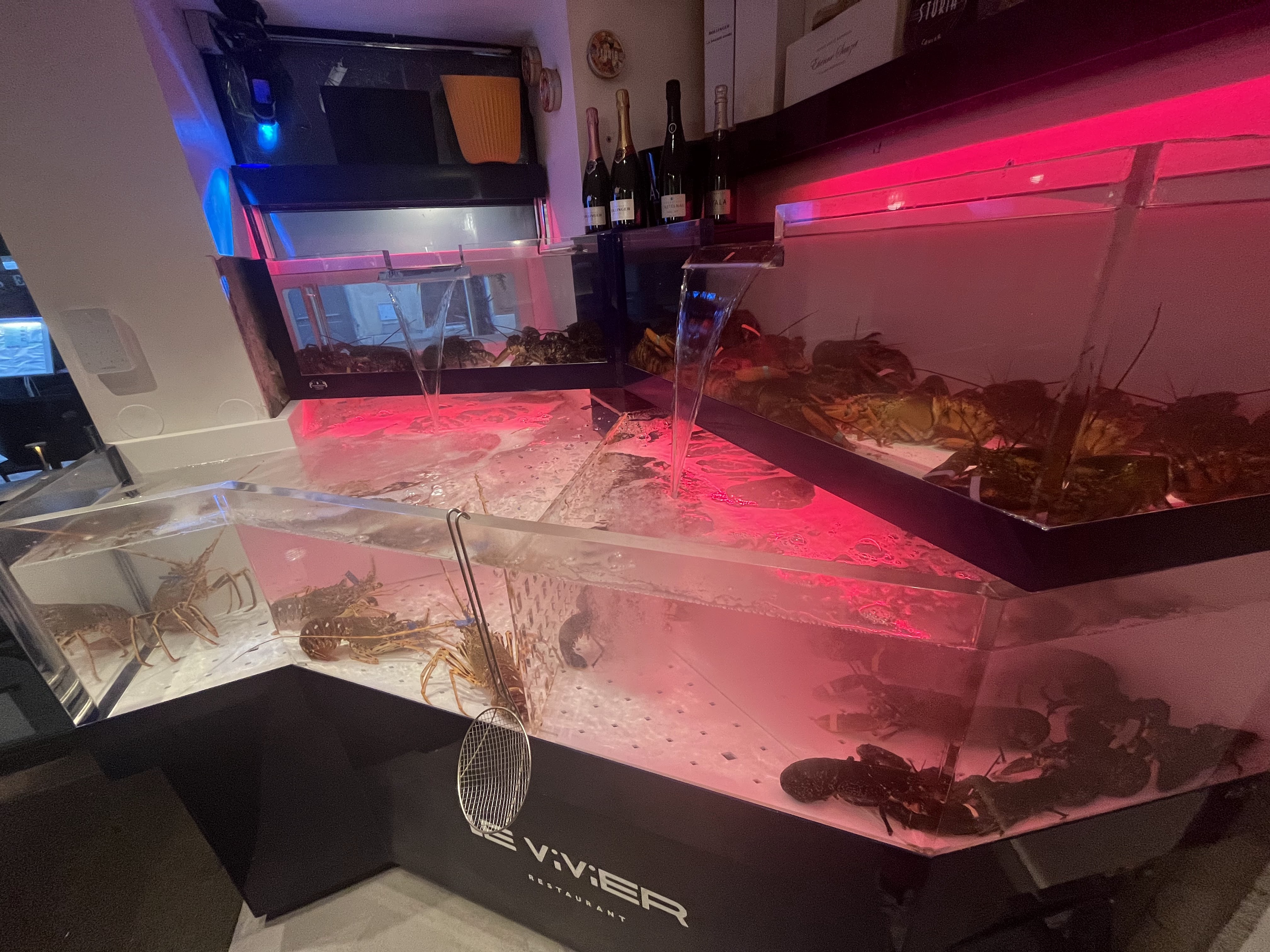 Ce restaurant est un peu cher par rapport à la quantité de nourriture servie. Avec des amis, nous avons opté pour un menu complet accompagné d'un vin Côtes du Rhône et une pinte de bière Picon. Ce que je n'ai pas apprécié, c'est de voir les langoustines vivantes exposées pour les personnes qui allaient les manger. Il est important de se rappeler qu'il s'agit d'animaux, et leur exposition ainsi peut être perturbante pour certains.