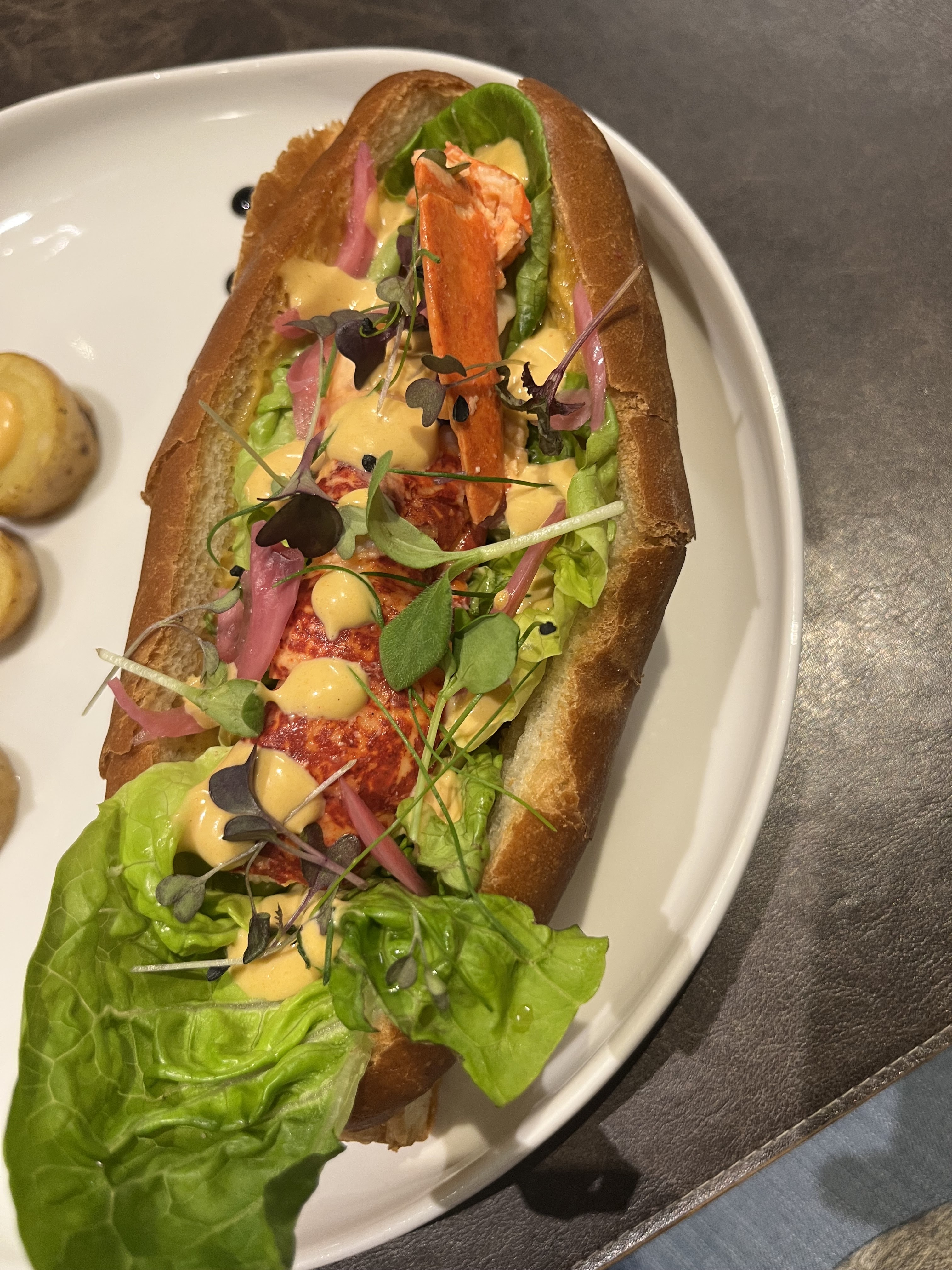 Posté le 16/08/2024 à 15:11"Très belle expérience, un menu recherché, belle carte de vins. Chouette terrasse. On s’y plaît. Photo : lobster roll. Un baba, oui un vrai baba, Merci"