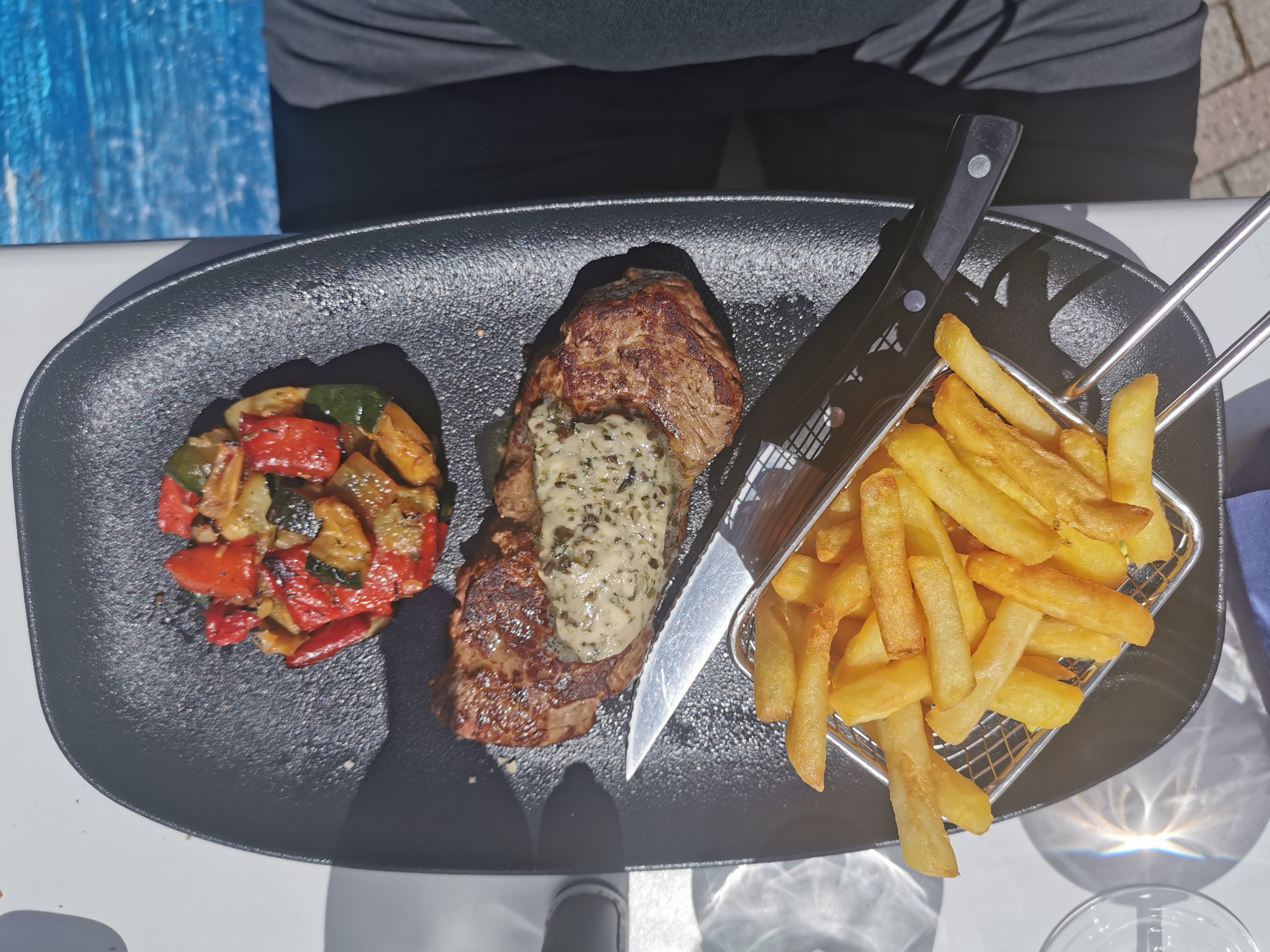Très déçu des moules petites séchés et coquilles vides, entrecote dur, cru et pleins de gras mais aussi nous n'avions même pas tous les menus, le 1/2 verre de vin 6e, nous avons payé 83e 3 plats sans dessert et encore fain en sortant donc si vous avez fain je ne vous conseille pas ce restaurant ! A fuir absolument c'est avec plaisir que je n'y retrouverai pas, seule côté positif la vue