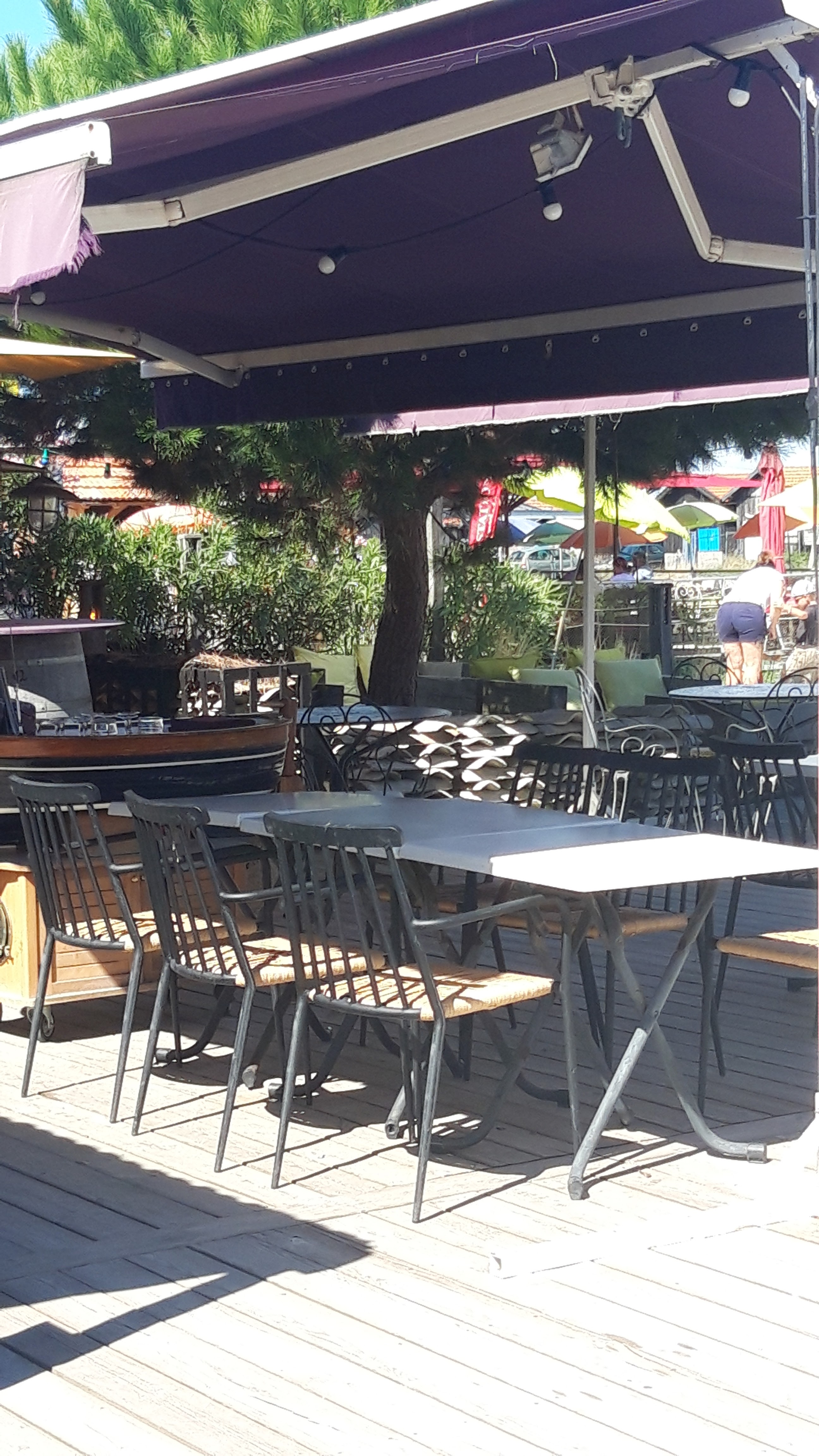 Une pergola aluminium pas du tout dans l esprit bois du bassin. Un personnel speed, pas de pics et pas de pince avec l assiette de fruits de mer, huîtres ouvertes trop longtemps. Déçu hier soir.