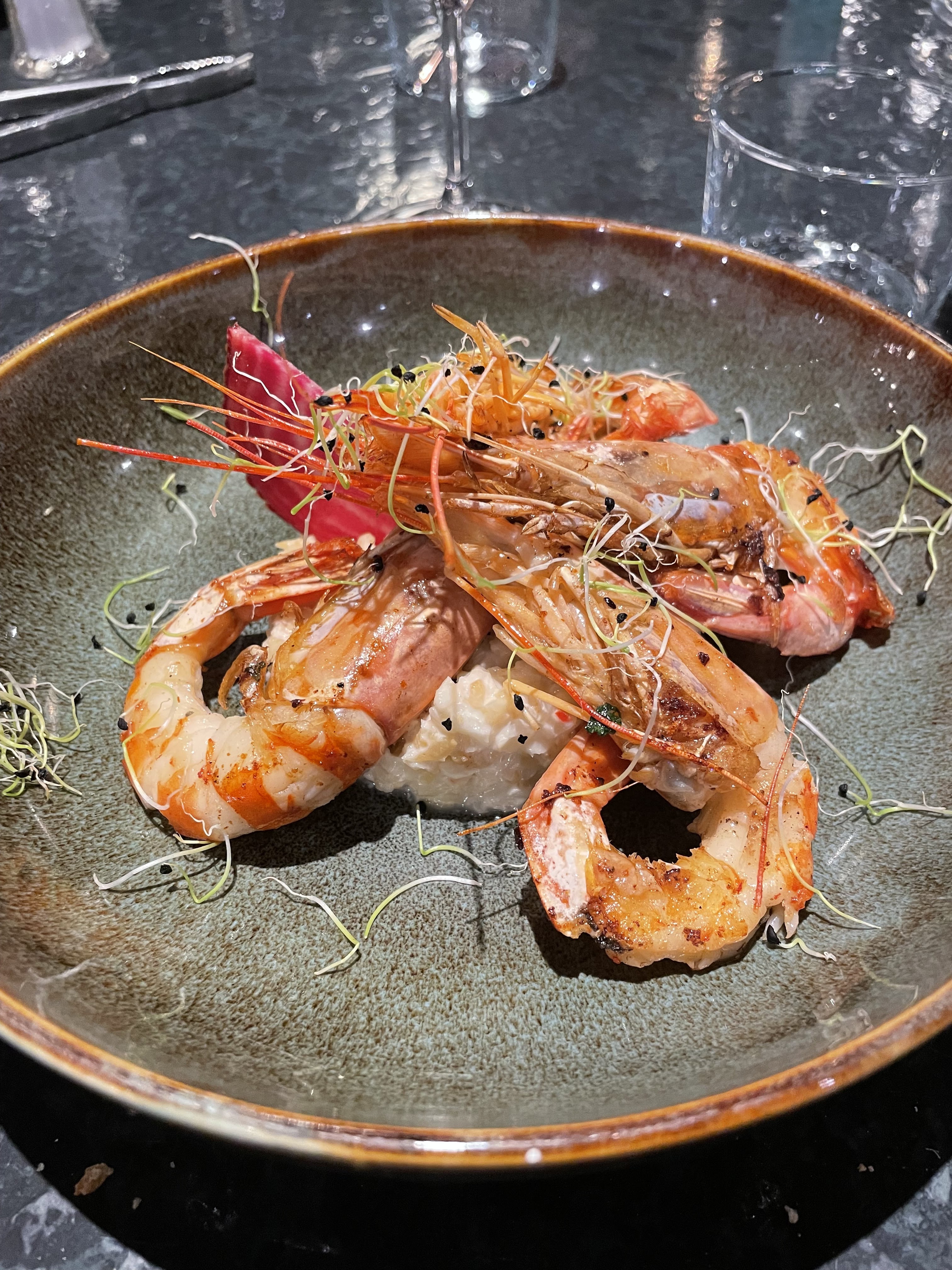 Très déçus 😞 Le plat principal est très très léger en quantité et vraiment pas exceptionnel en terme de goût. Ma dorade = 2 morceaux de poisson et non pas le poisson entier comme on peut s'y attendre. Le plat de gambas = 4 gambas ! OK on a un buffet de fruits de mer à volonté mais du coup le plat est bâclé. Bon point : le cadre et les huîtres. C'est tout. Même le service n'est pas particulièrement chaleureux.