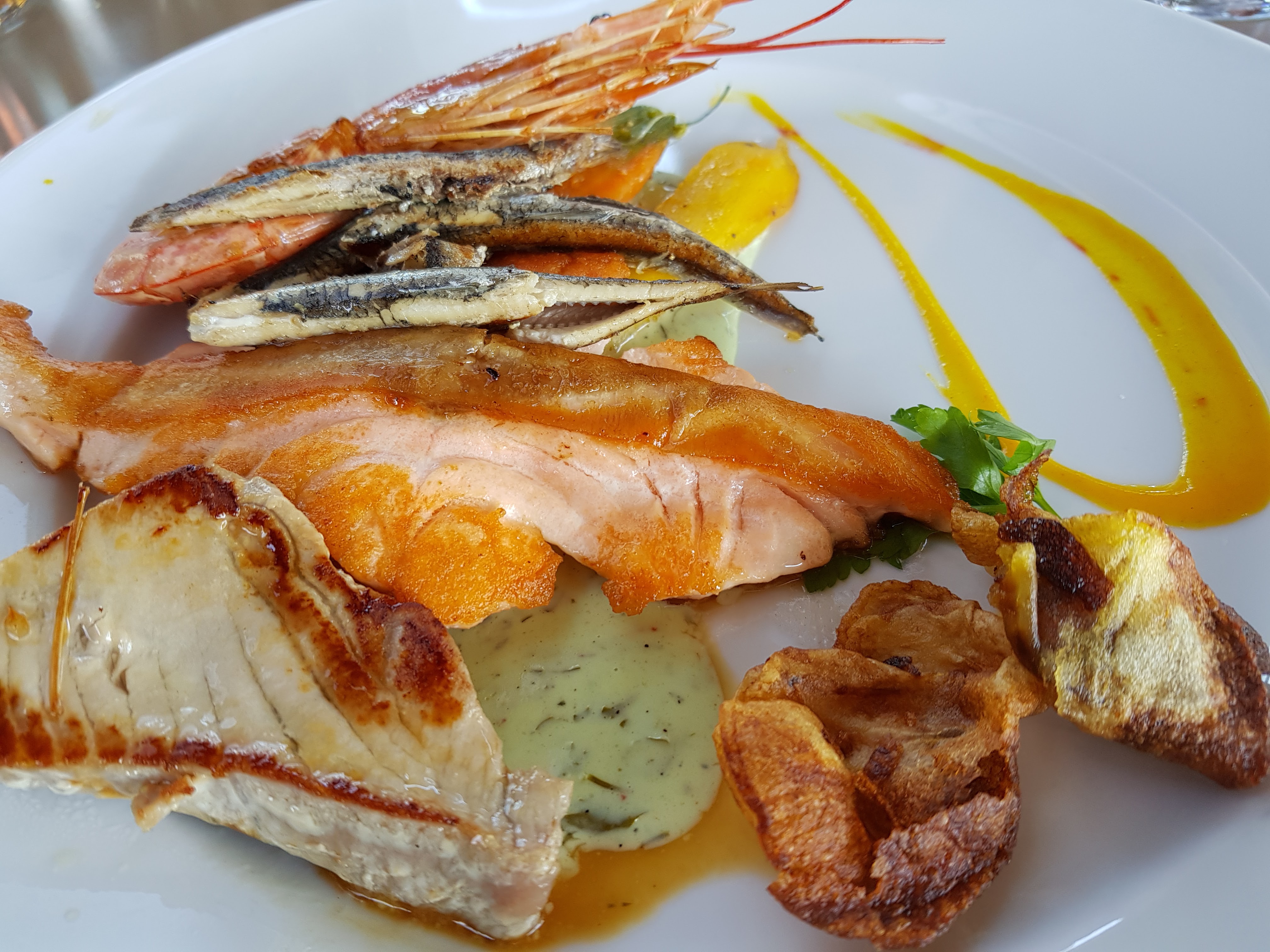 Accueil et personnel vraiment très sympa, par contre le buffet à volonté est sympa mais manque de goût (épices) sur certains fruits de mer , l'aïoli proposé manque d'ail à mon goût. Sur le plat celui-ci était très bon