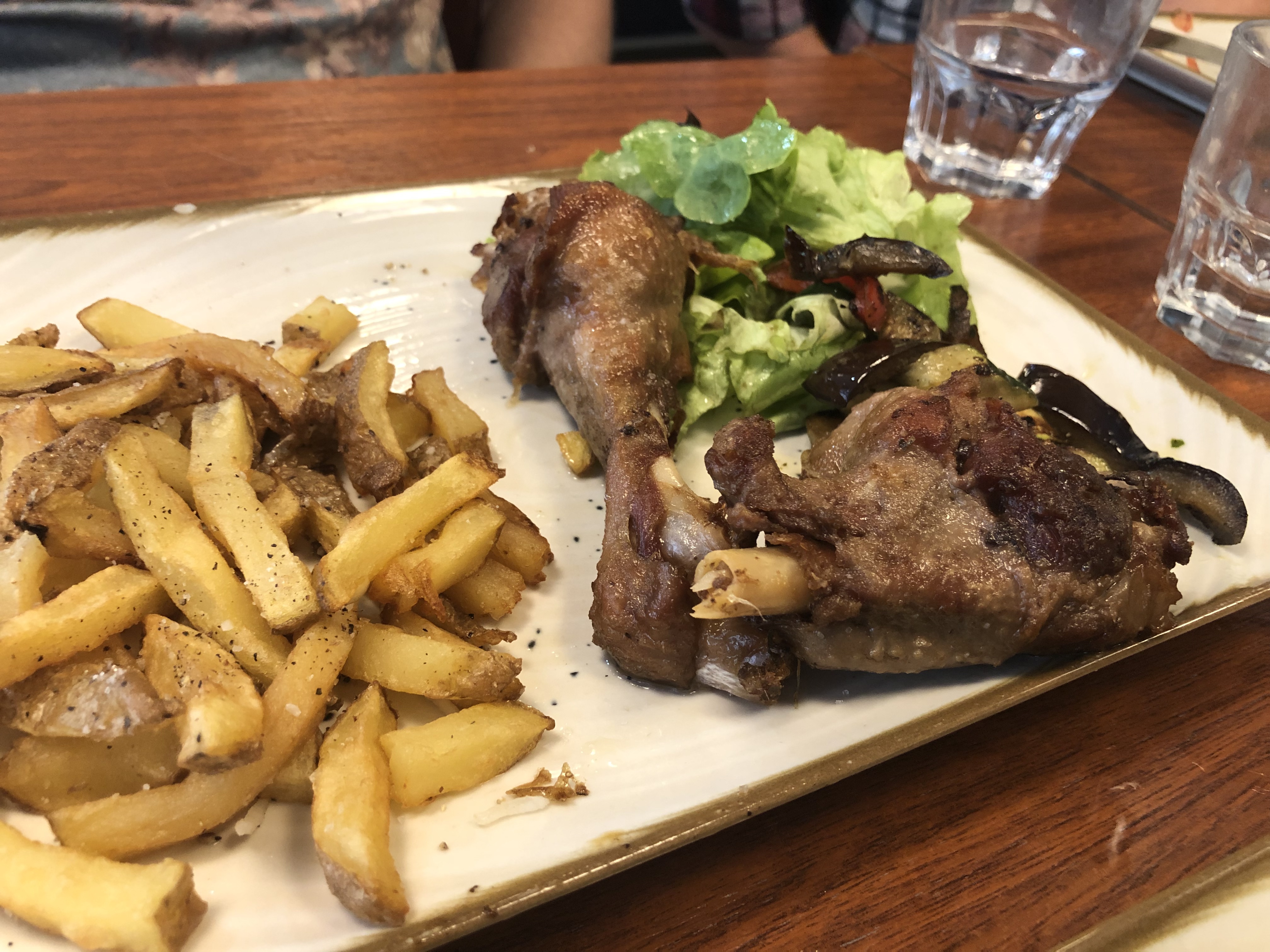 " Nous avons été surpris par des frites de style kebab (ou McDonalds ?) en accompagnement au lieu des habituelles pommes de terre cuites à l'ail et aux herbes (ce que nous avons également vu chez d'autres clients). La serveuse n'a pas proposé d'explication ni de changement lorsque nous lui avons posé la question. Le steak trop cuit qui avait été commandé moyennement rare était impossible à mâcher. Après tout, une moyenne à 19 euros ne devrait pas être l'équivalent de ce que le restaurant étudiant de Toulouse vend à 5 euros. "