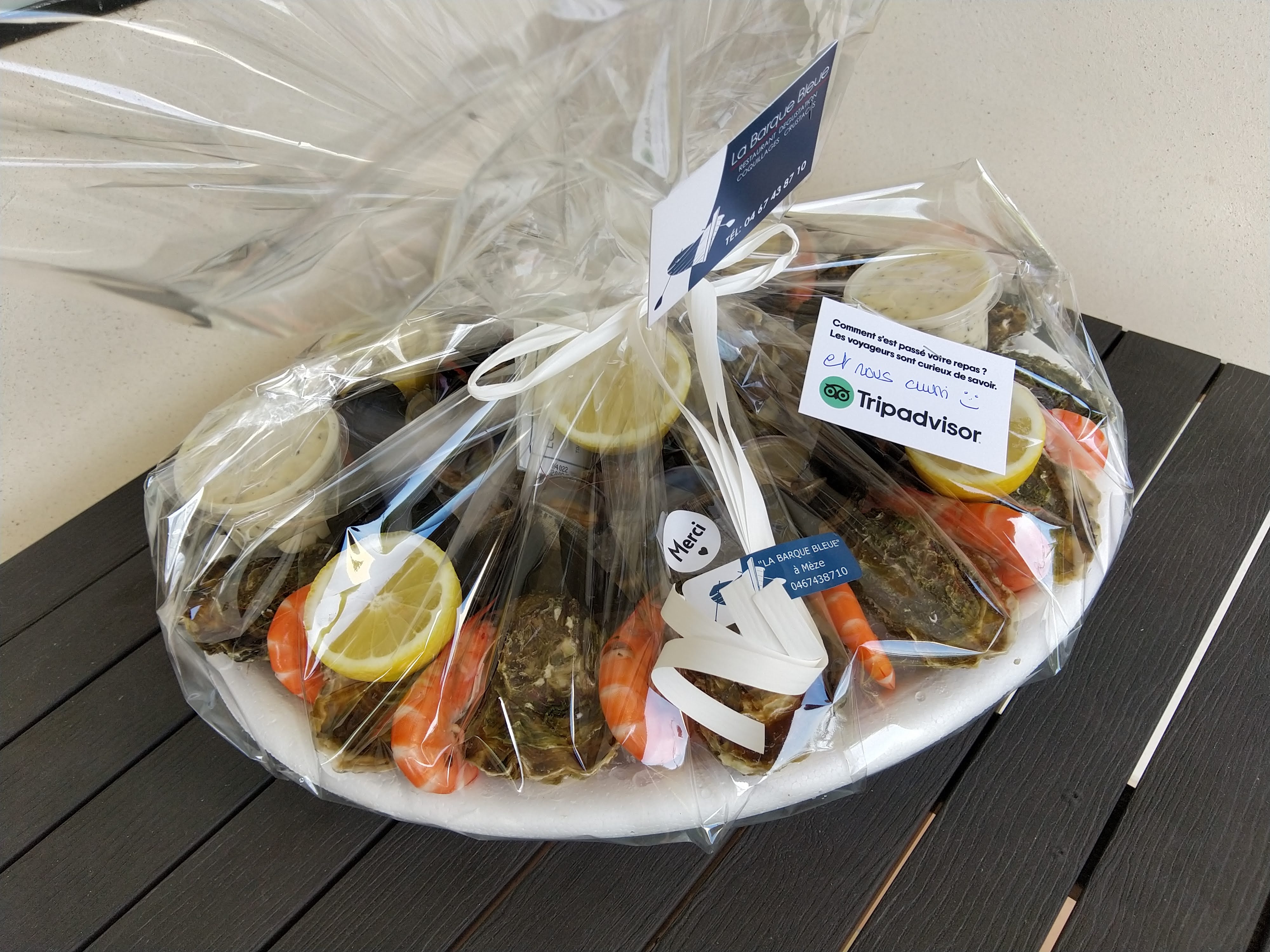 Posté le 11/03/2023 à 14:52"Impossible de visiter Mèze et les étangs de Thau sans une dégustation d’huîtres et de coquillages ! Nous avons choisi le restaurant « La Barque Bleue » pour satisfaire nos papilles gustatives ! Bien nous en a pris ! Nous nous sommes laissés tentés par le plateau de fruits de mer Royal ! C’était effectivement royal ! Avec, et c’était une première pour nous, des moules crues. Tout était exceptionnellement frais ! Le tout arrosé du blanc du cru, un délicieux Picpoul (cuvée spéciale Domaine Gaujal)! Vous l’avez compris nous avons été fans et nous y reviendrons !"