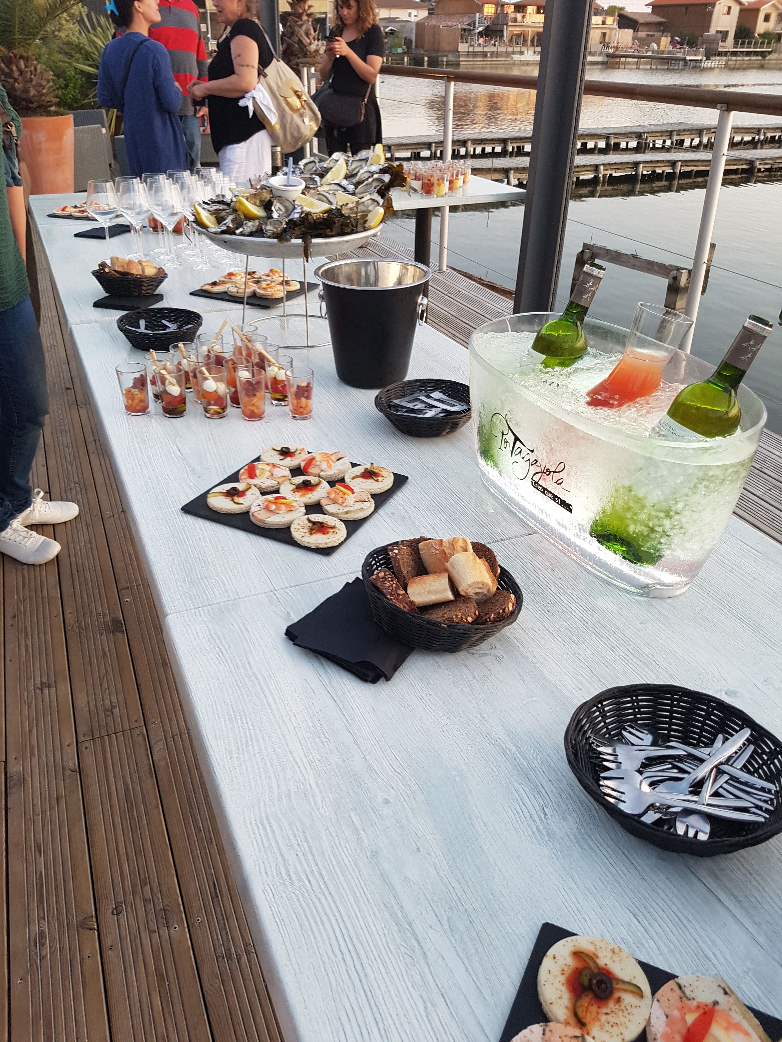 La terrasse au bord de l'eau est très sympa . Serveurs agréables et pas d'attente trop longue entre les plats . Beaux plateaux de fruits de mer. Prix de certains plats un peu excessif.