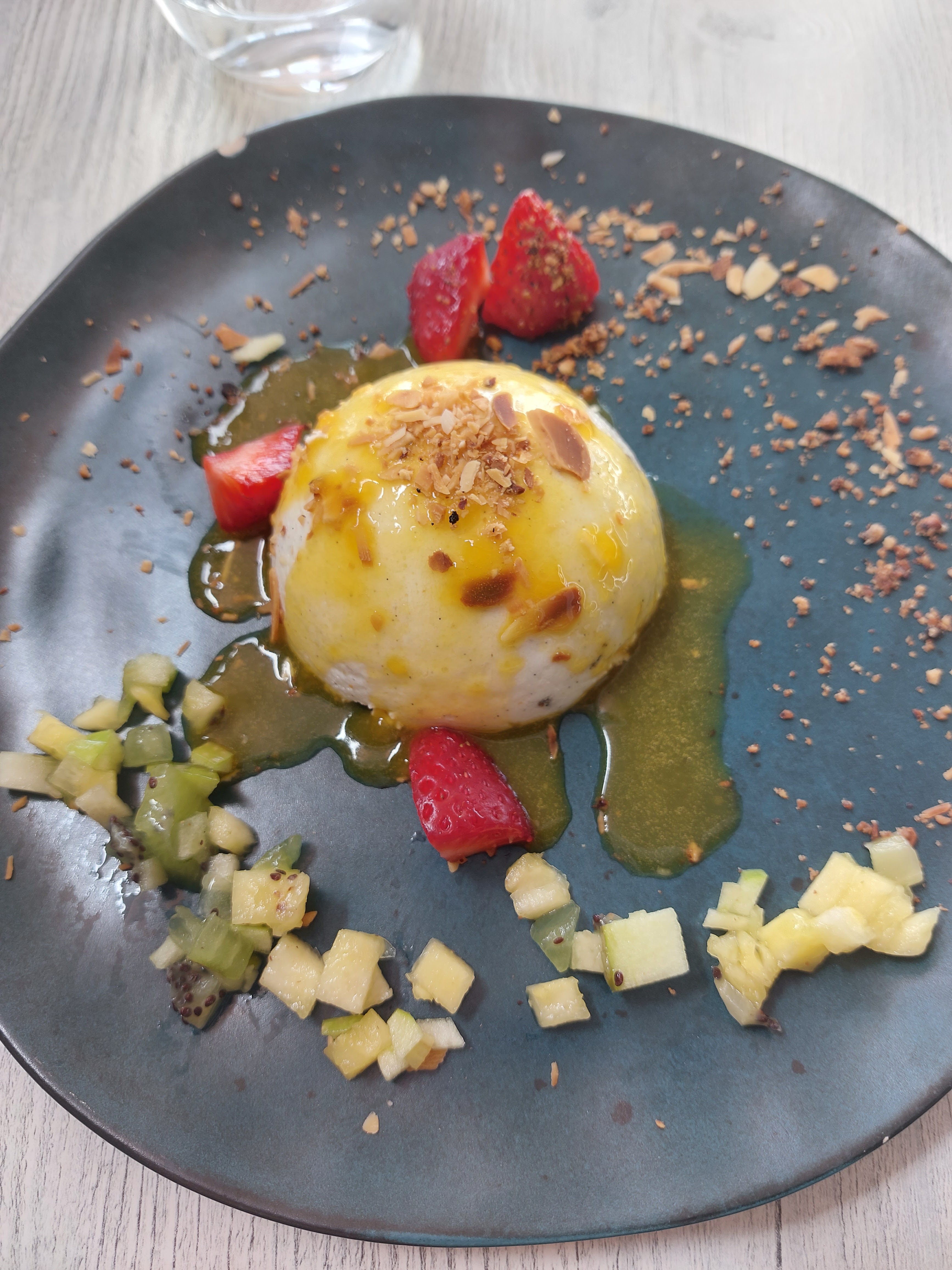 Les fruits de mer étaient très bons mais la soupe de fraises au basilic était en fait un coulis industriel bien trop sucré et sans basilic. Aucun geste du restaurant pour rectifier malgré une addition bien remplie de notre table (10 personnes, entrée + plat + dessert + vin + café + digestif). Les digestifs n'ont pas un bon rapport qualité / prix. Bonne qualité du service.