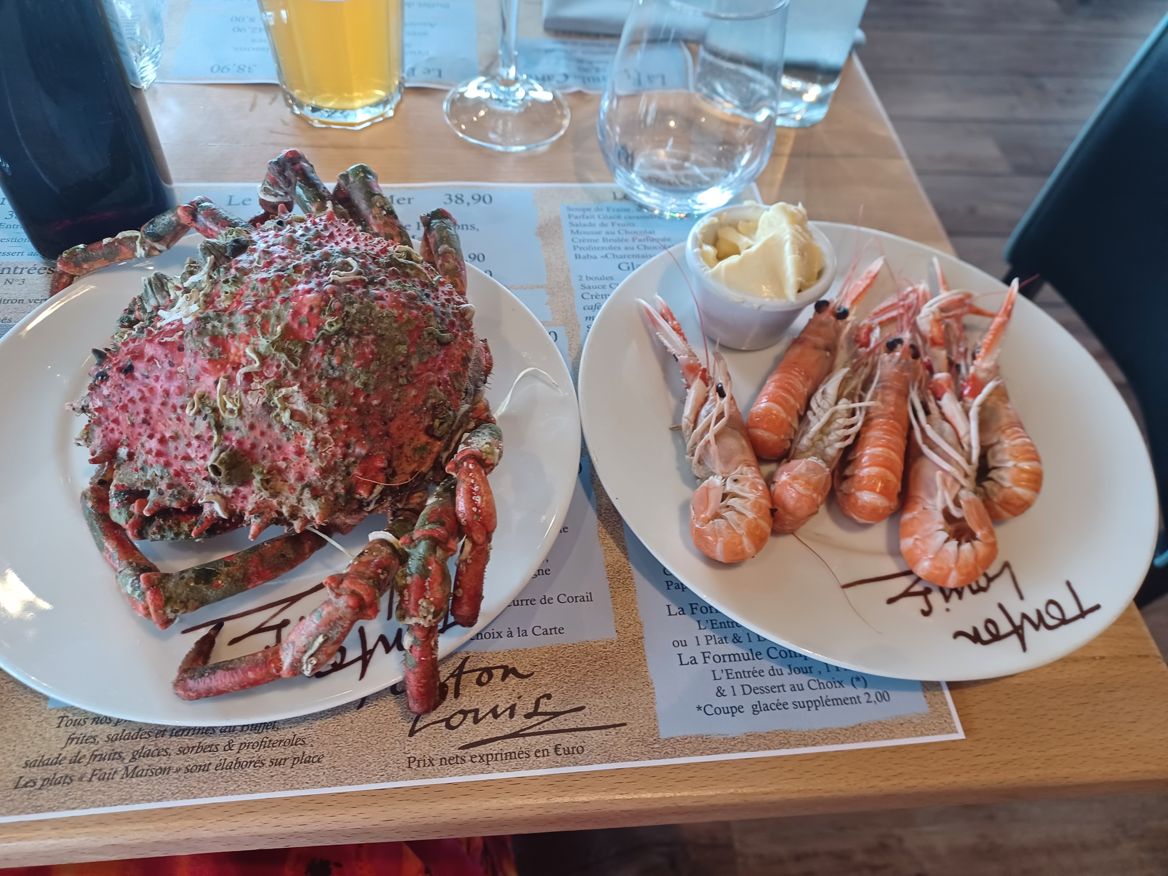 Posté le 14/11/2024 à 13:07"Excellent service. Que des personnes aimables souriantes et efficaces. Très bonne soupe de poisson. Bonne soupe (c'est pas la désignation exacte) de calamars. Très bonne araignée de mer Très bonnes langoustines. Les crevettes moins percutantes, peut-être trop glacées. Café liégeois très très copieux, dommage que la café versé dessus paillette un peu. Déception côté baba malgré l'arrosage au cognac, le biscuit bien trop sec et trop compact. On garde un très bon souvenir et on reviendra avec gourmandise et plaisir."